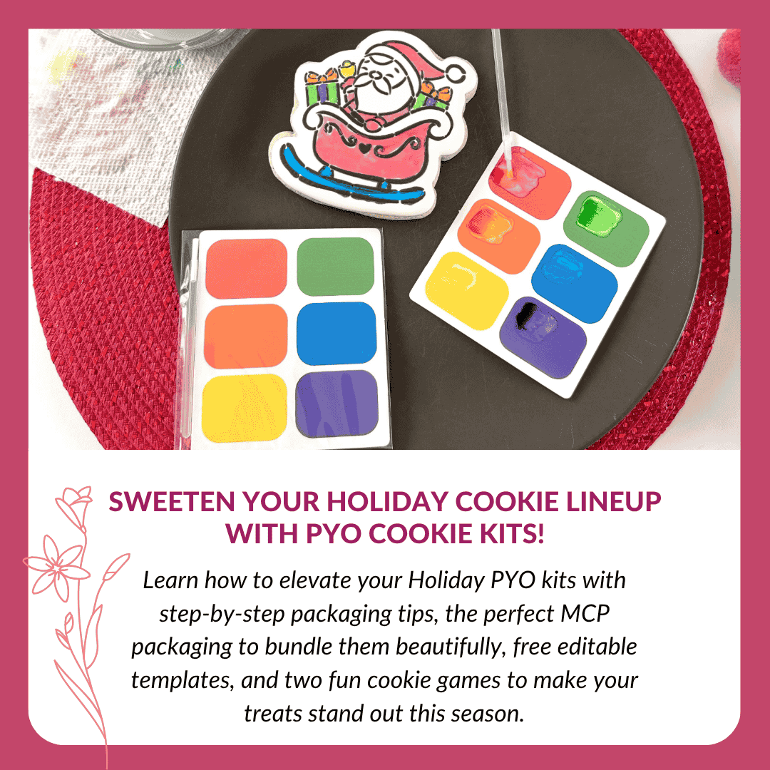 These bonus activities are even easier to offer than traditional PYOs because they use fully blank, white-flooded cookies, no stenciling or designing required! To make it even simpler, we’ve created free editable Canva templates that you can print at home and include with your PYO cookie kits. They add a fun, festive touch to your Holiday treats and give your customers a unique decorating experience they’ll love.