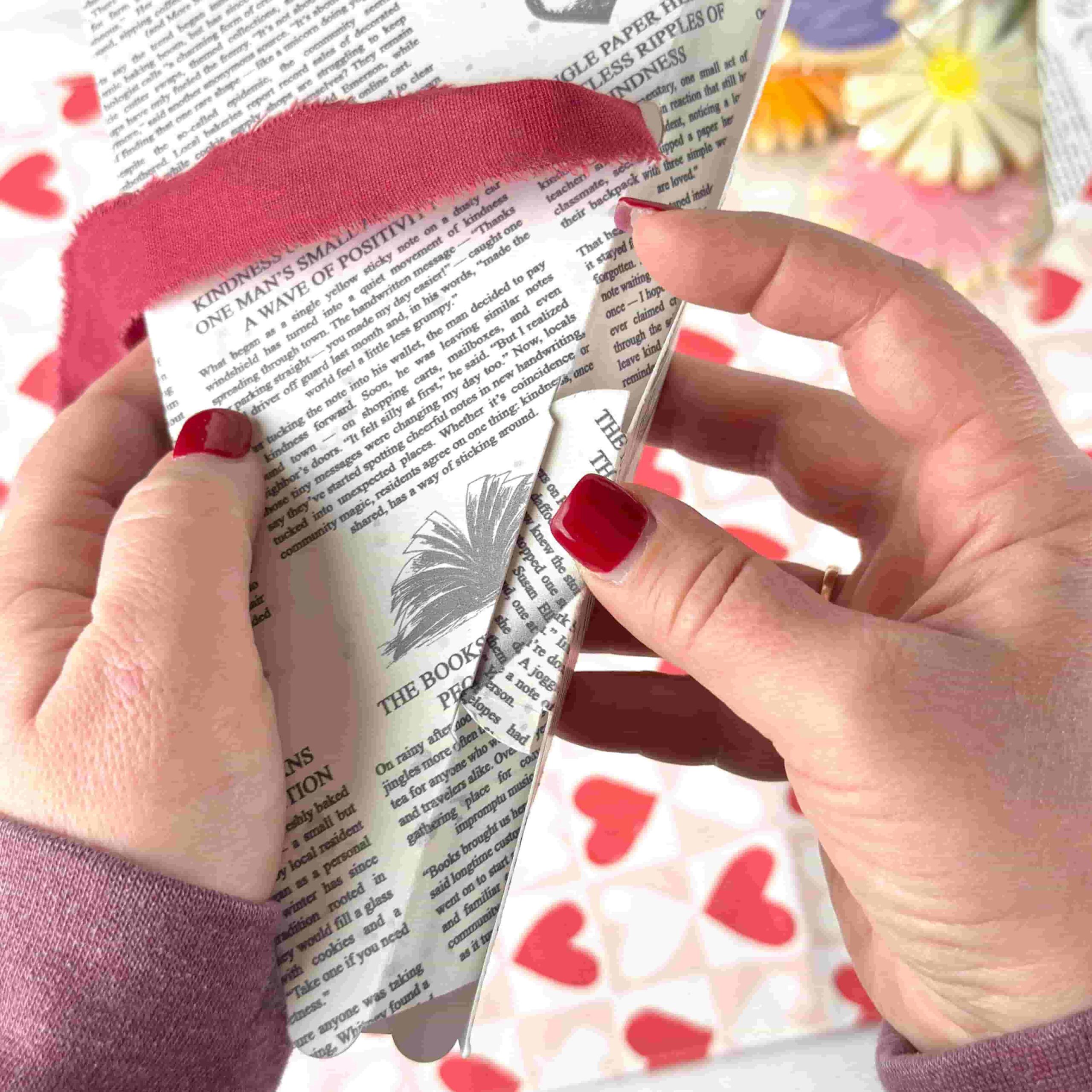 If you’re using ribbon, thread it through the holes at this stage.