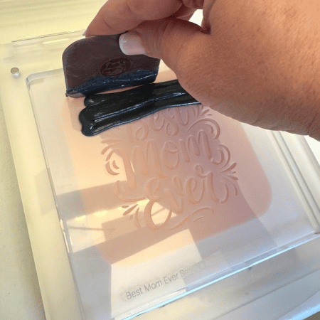 We use the Sweet Stencil Holder Plus with the frame extender for best results. If you’re new to this system, be sure to check out the tutorial video on their website before your first use, it will walk you through setup and help you get the cleanest application possible.