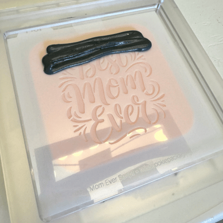 Note: The pink blocks shown in this tutorial are 3D printed “practice cookies” we use to test our stencils. They’re perfect for practicing and making sure your icing is the right consistency before working on real cookies. Once you’re done, simply wipe off the icing, wash them just like you would a cookie cutter, let them air dry, and they’re ready to use again and again.