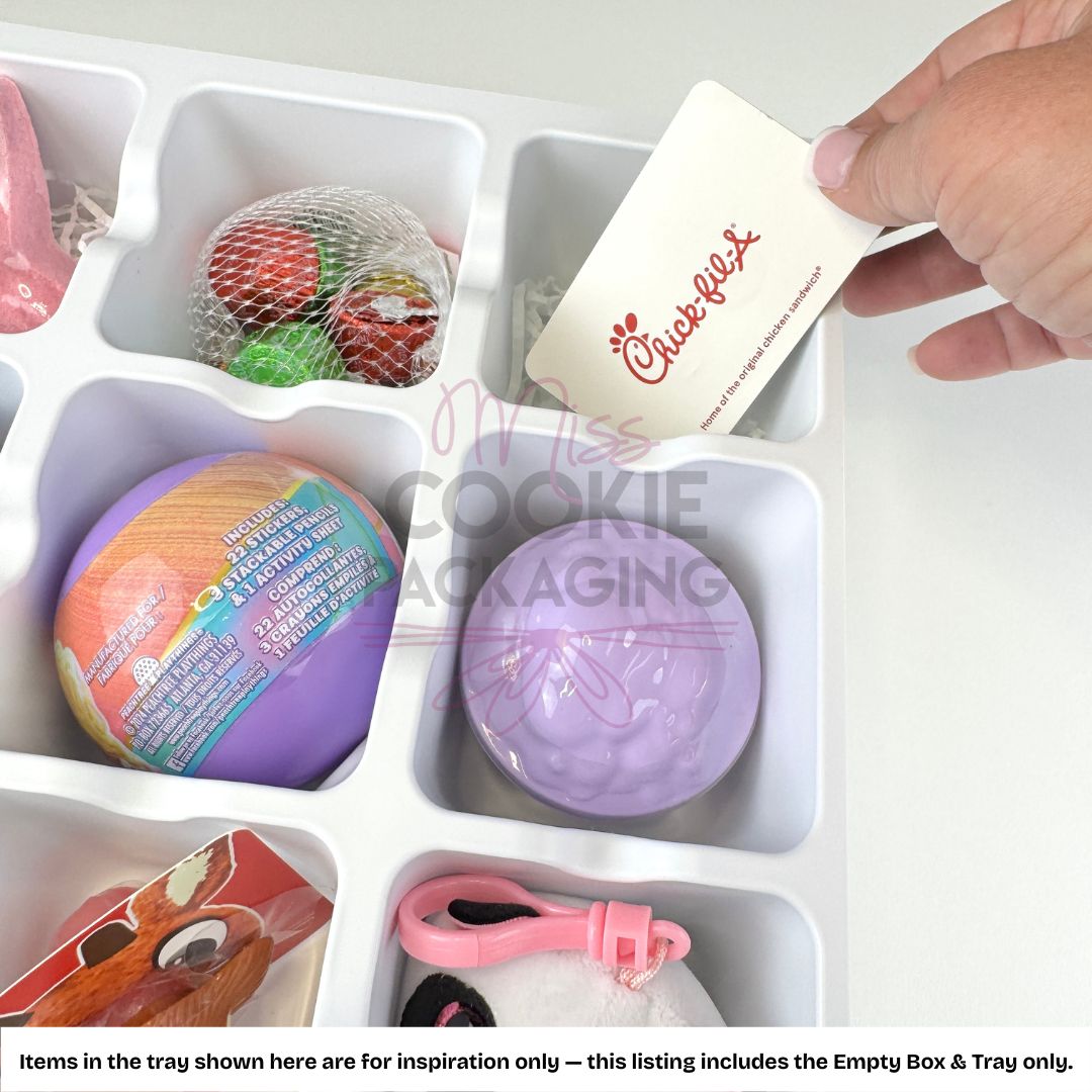This item includes PACKAGING ONLY. This listing is for advent calendar boxes, and the corresponding internal trays that hold the items in place. This listing is for the advent calendar box, and the white internal tray only.