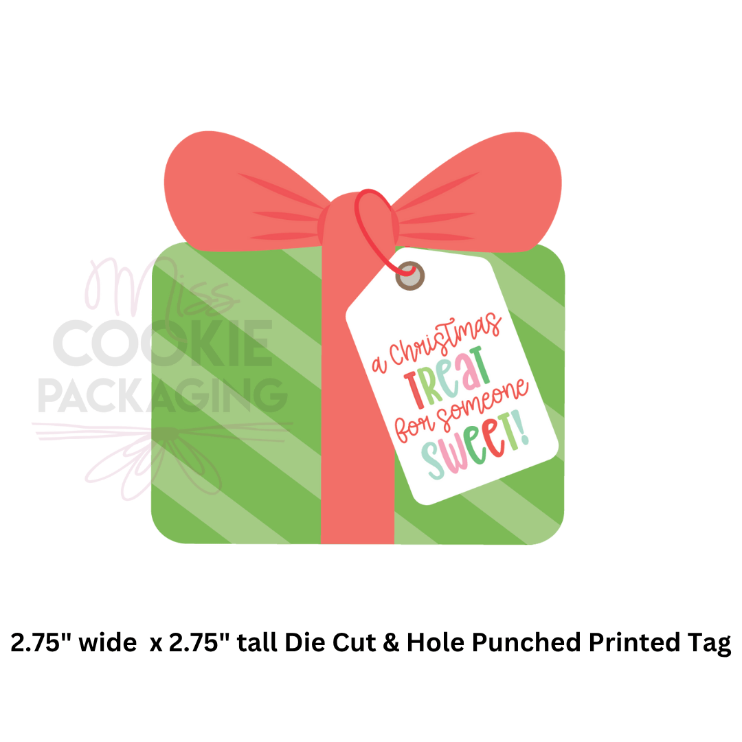 “A Christmas Treat for Someone Sweet” Gift Shaped Die Cut Tag – 25 Printed 2.75″ x 2.75″ Tags