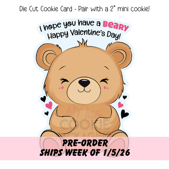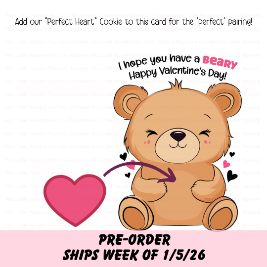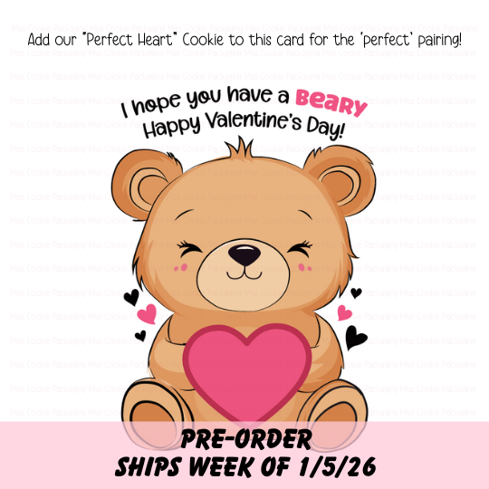 Beary Valentine’s Day Die Cut Cookie Card – Set of 25 Printed 5″ x 7″ Cookie Cards