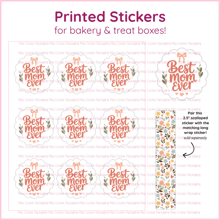 Add the perfect finishing touch to your packaging with our 2.5″ Round Scalloped Stickers, designed to make your treats feel extra special this Mother’s Day!