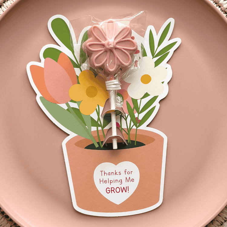 CAKE POP – Thanks Helping Me Grow Die Cut Card – Set of 25 Printed 5.75″ x 7.5″ Cake Pop Cards