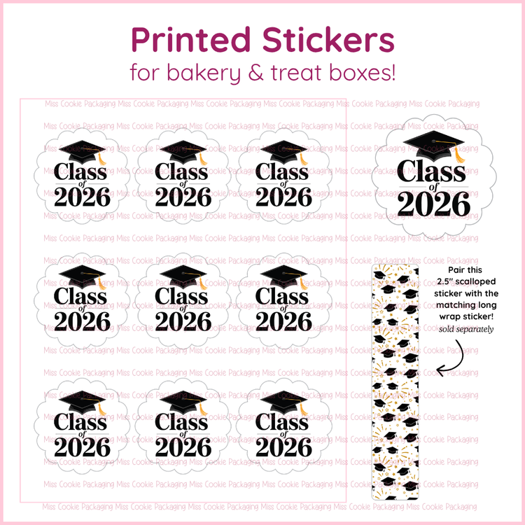 Classic Class of 2026 – 1 Printed Sheet – 9 Scalloped Stickers – 2.5″ Round