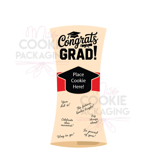 “Congrats Grad” Diploma Die Cut Cookie Card – Set of 25 Printed 3.5″ x 7″ Cookie Cards