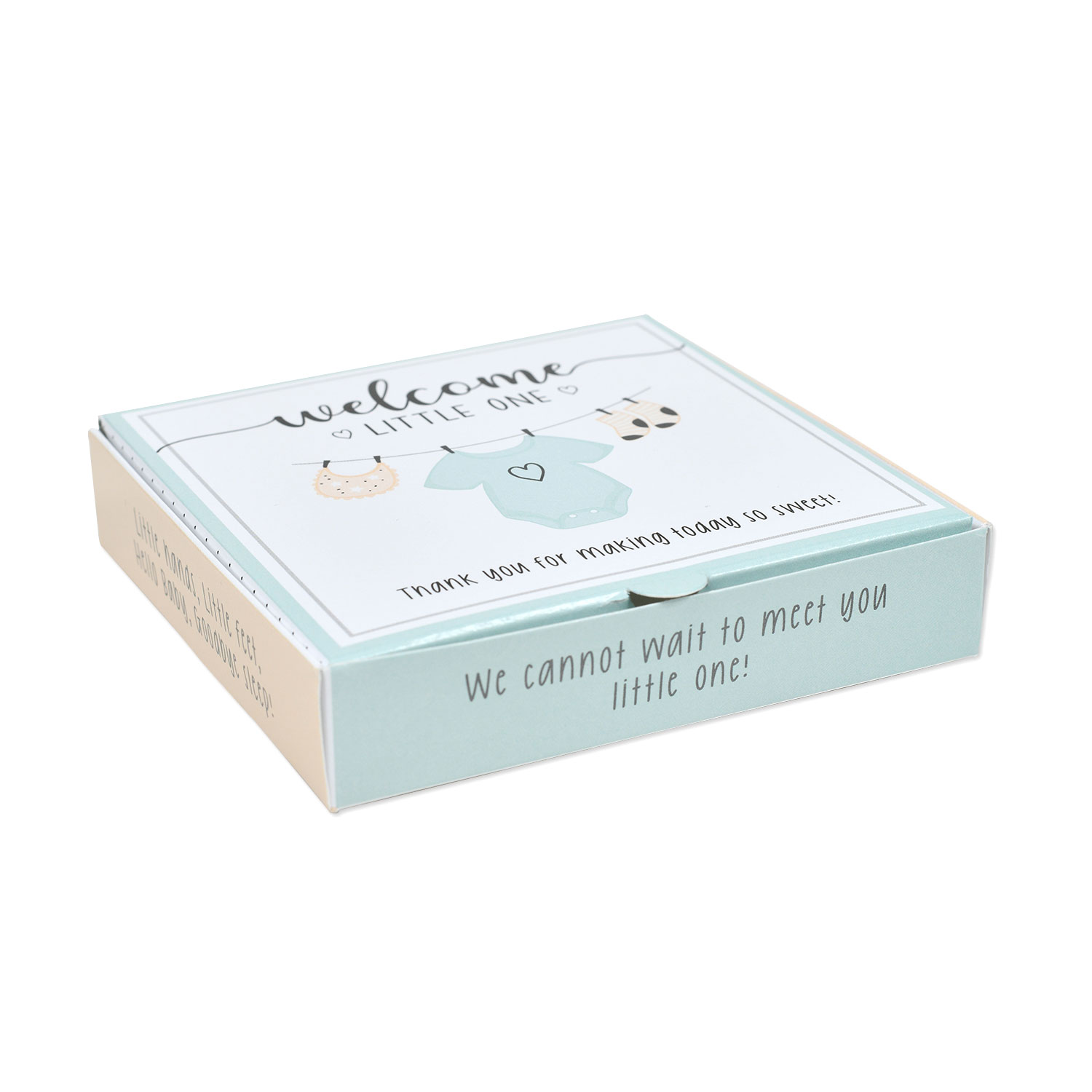 Cookie Pizza Box “Welcome Little One” Baby Shower / Mom to Be – 4″ x 4″ x 7/8″ Cookie Packaging Box