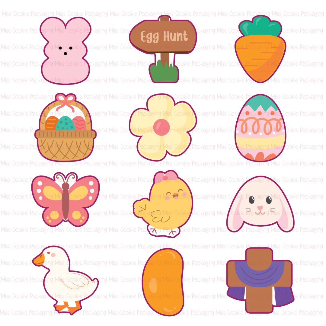 Our Easter Mini Cookie Cutter Set includes 12 adorable, bite-size designs that are perfect for building cute little assortments of Easter goodies.