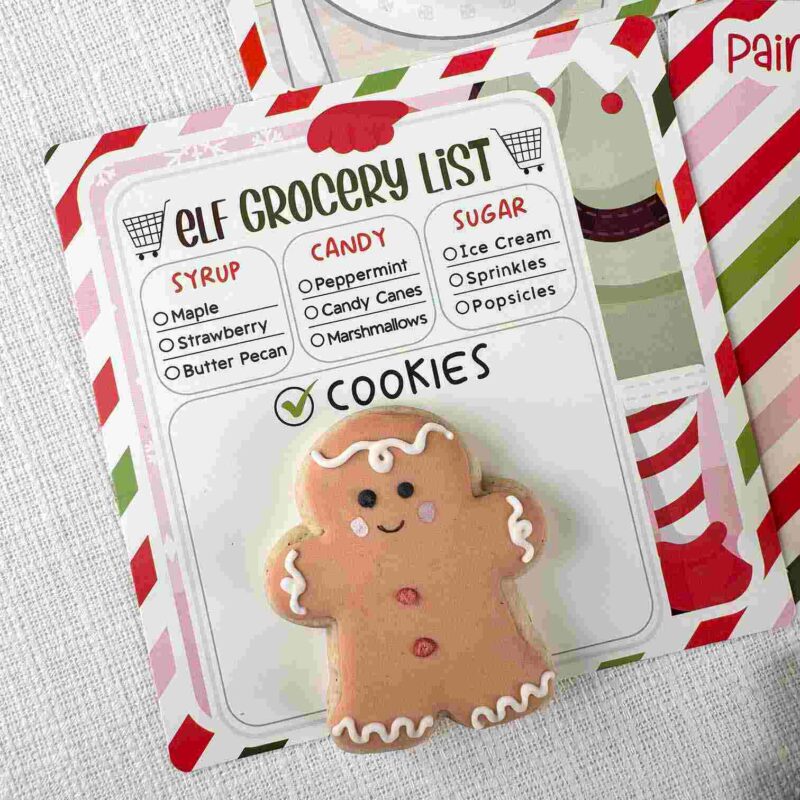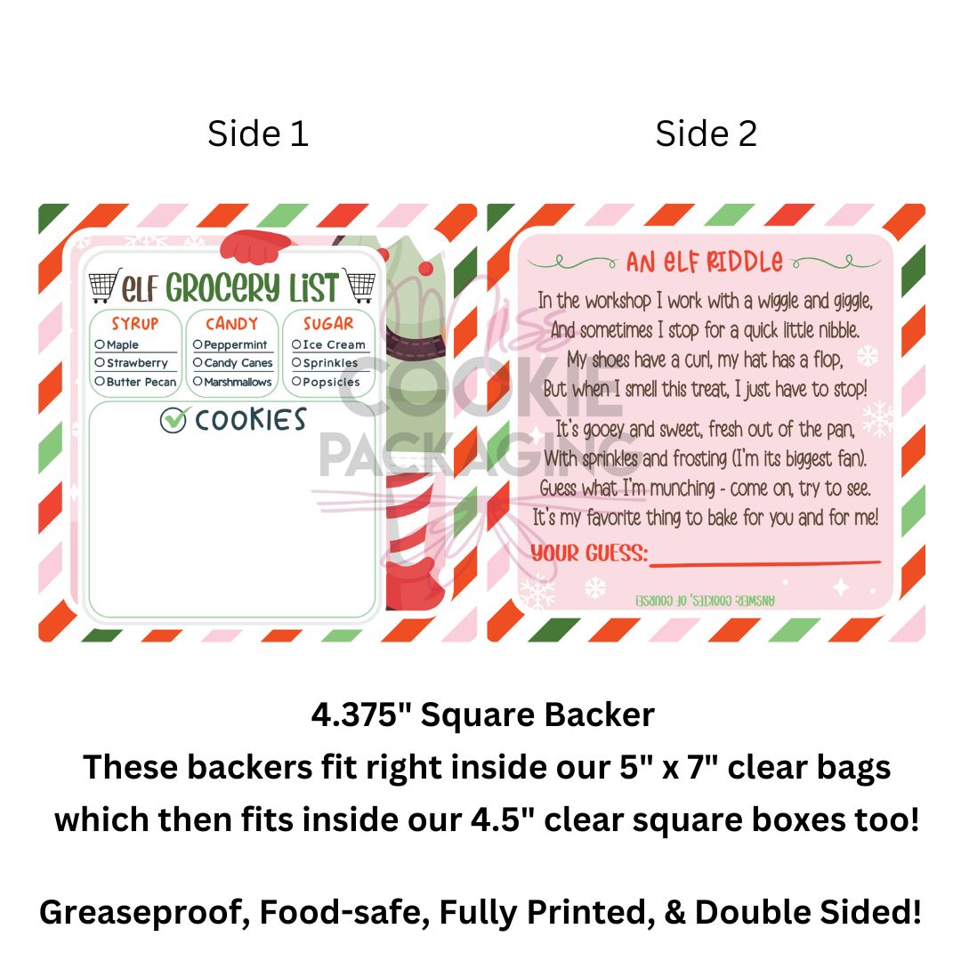 Greaseproof Backer – Elf Grocery List – 4.375″ Square Backer (for 4.5″ BOX or 5″ x 7″ Clear Bag)
