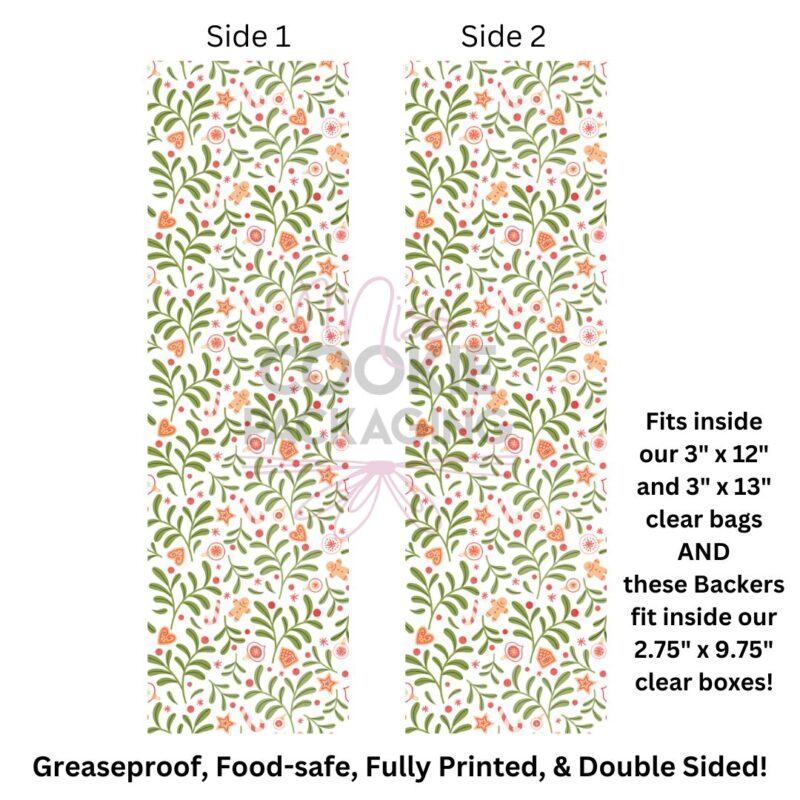 Greaseproof Backer – Greenery & Gingerbread – 9.5″ x 2.625″ (for 3″ x 12″ and 3″ x 13″ Clear Bag)