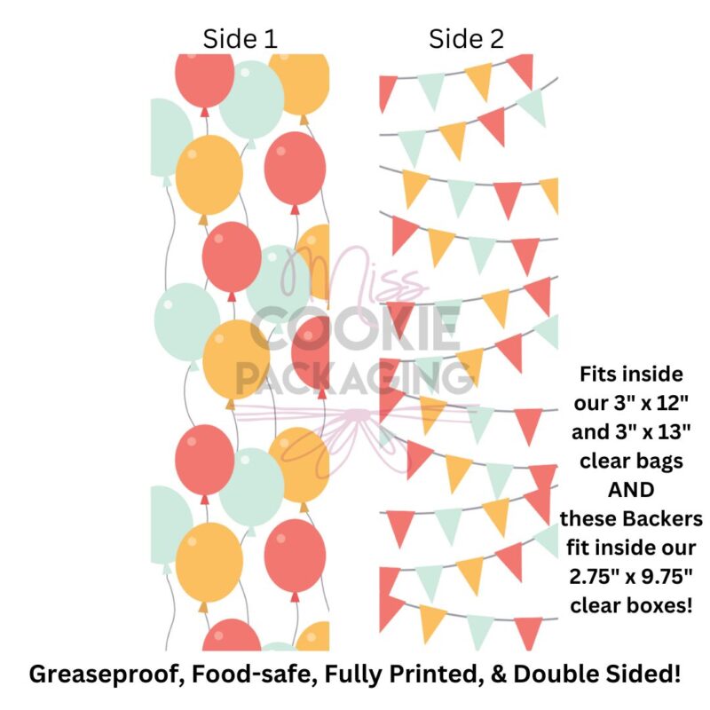 Greaseproof Backer – Celebrate – 9.5″ x 2.625″ (for 3″ x 12″ and 3″ x 13″ Clear Bag)
