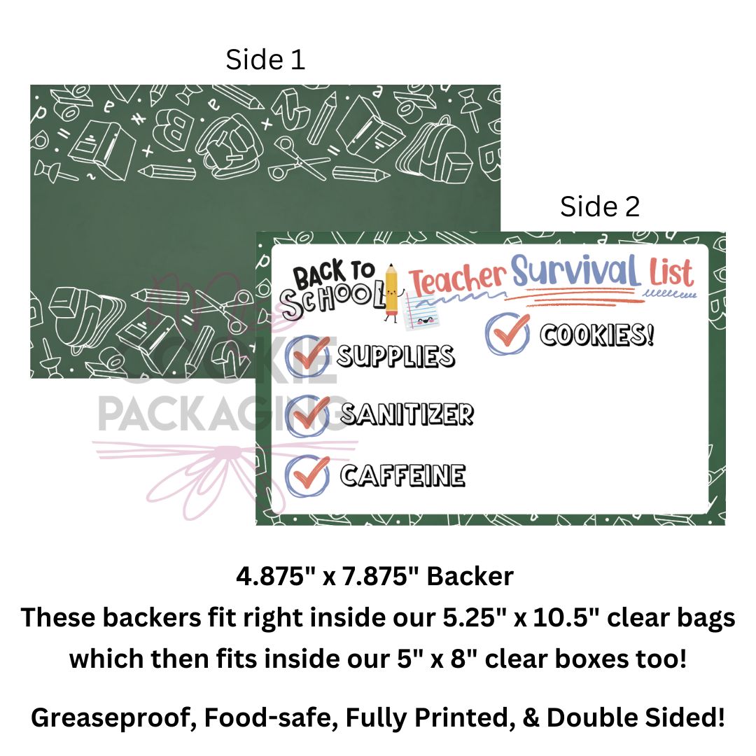 Greaseproof Backer – Teacher Survival List – 4.875″ x 7.875″ Backer (for 5.25″ x 10.5″ Clear Bag and/or 5″ x 8″ BOX)