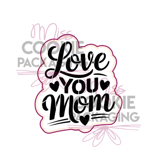Love You Mom Cookie Cutter • 3.5″ wide x 4″ tall