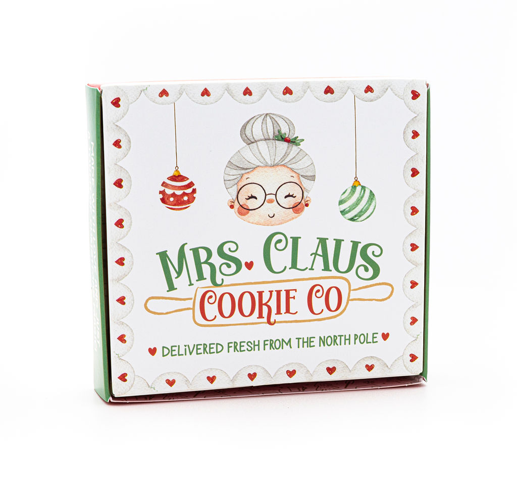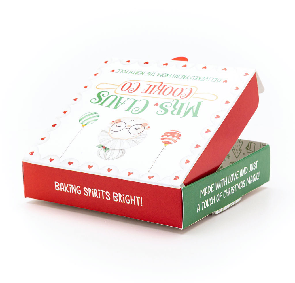 Cookie Pizza Box “Mrs Claus Cookie Co” – 4″ x 4″ x 7/8″ Cookie Packaging Box