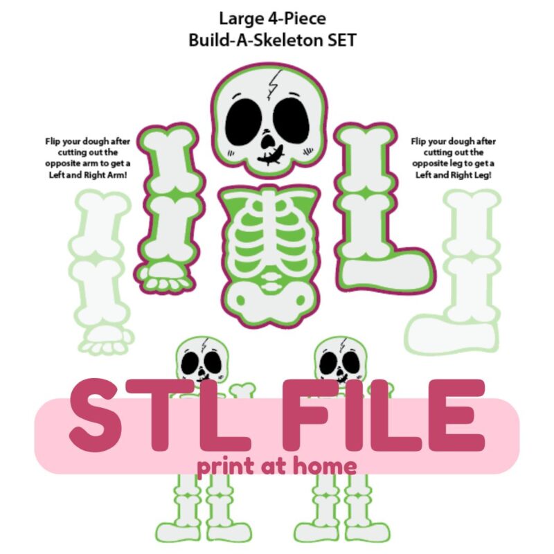 STL FILE – Digital ONLY – Large Build-A-Skeleton Kit – 4pc Cookie Cutter Set