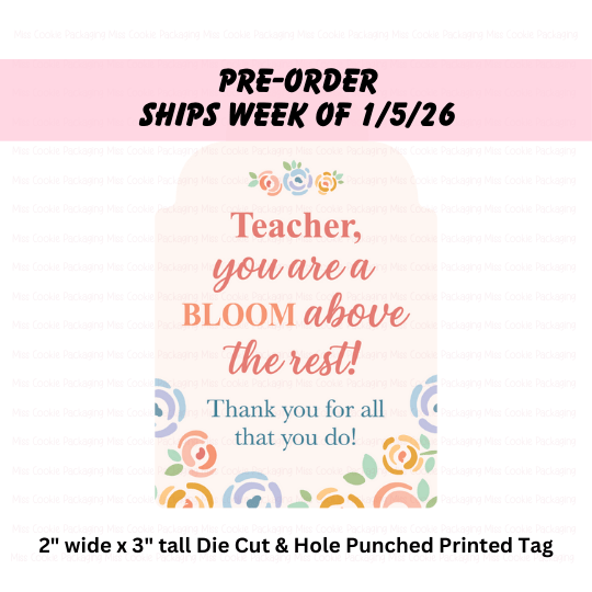 “Teacher, You are a BLOOM above the rest!” Gift Tag Shaped Die Cut Tag – 25 Printed 2″ x 3″ Tags