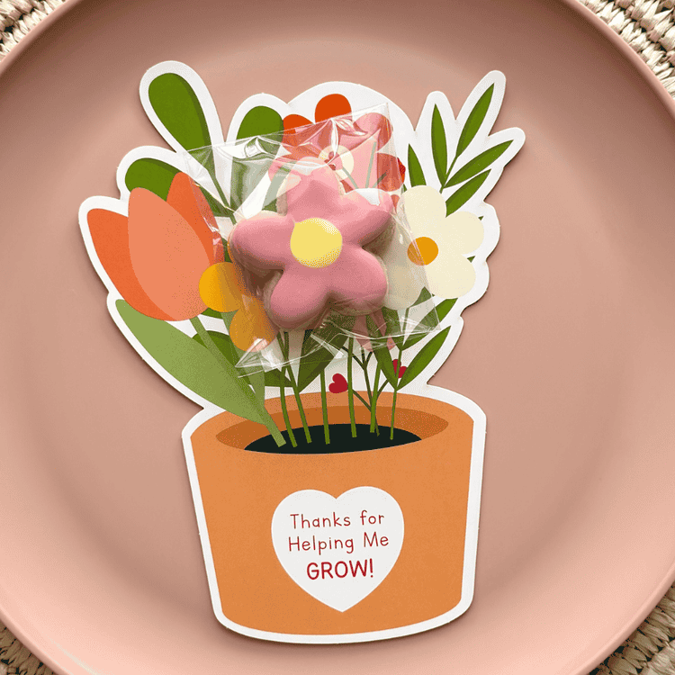 “Thanks for Helping Me Grow!” Die Cut Cookie Card – Set of 25 Printed 5.75″ x 7.5″ Cookie Cards